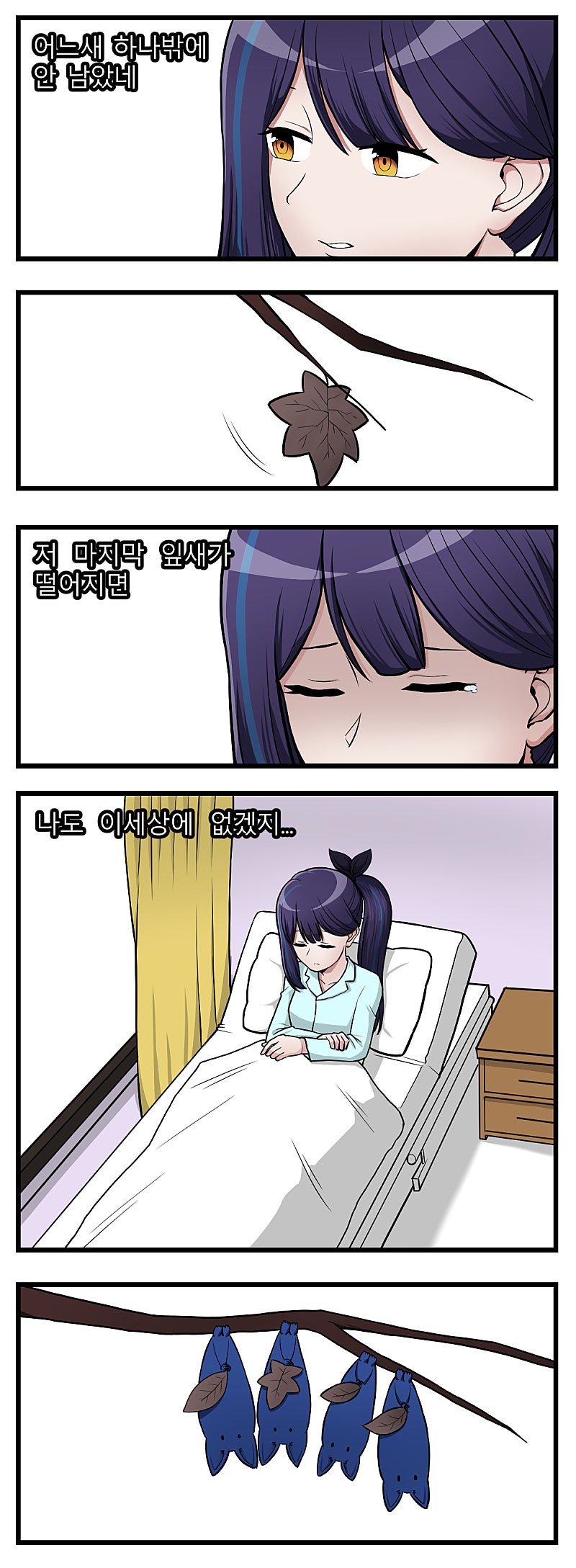 박쥐들이 잎새를 들고 있다 -> 박쥐들이 잎새를 뗐다 -> 헉!