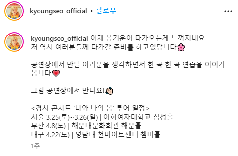 현재 경서님은 한창 콘서트를 준비중이셔서.. 결코 재계약 시즌으론 보이지 않습니다.