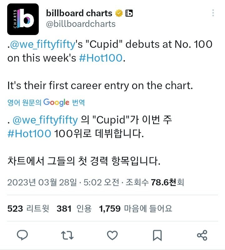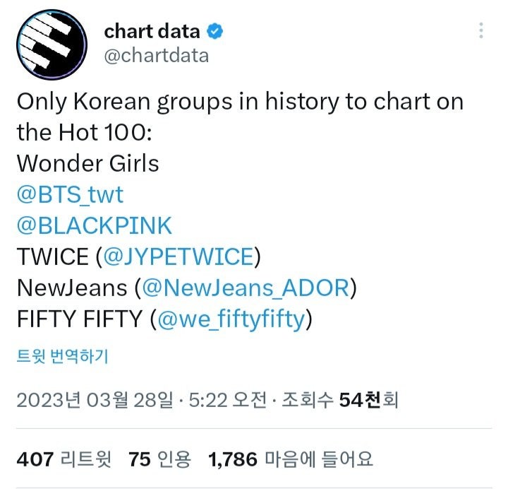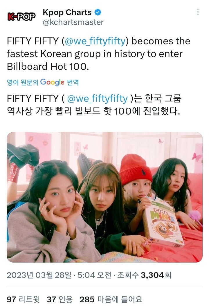 형 오늘자 빌보드 핫100 최단기간으로 진입한 한국 신인 걸그룹 봤어?
