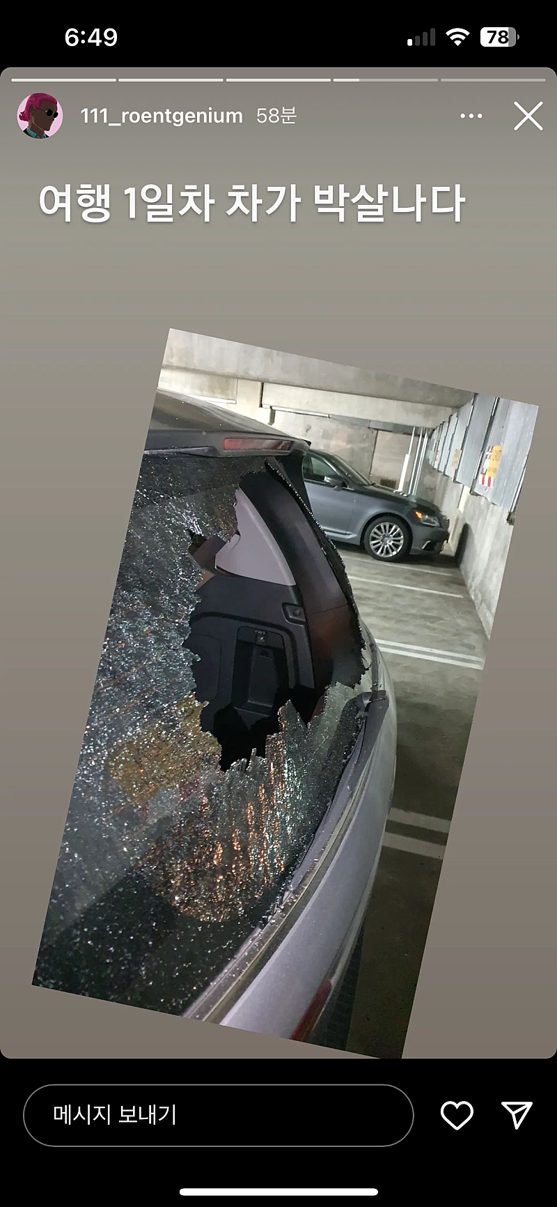 형 뢴트님 여행가서 차 박살난거 봤어?