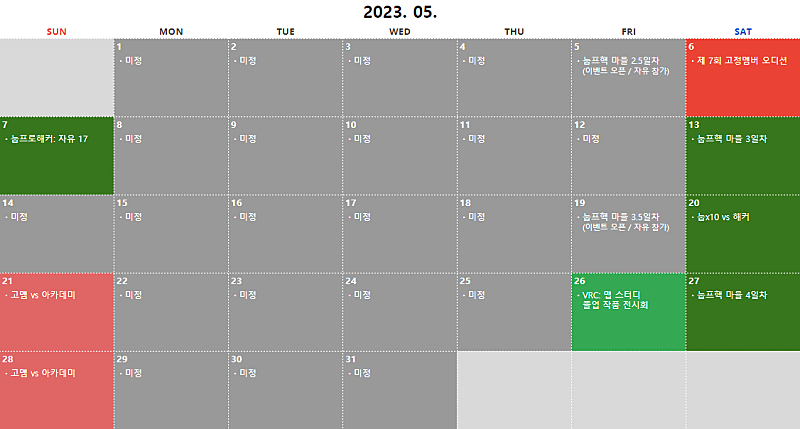 2023년 06월 ① 고멤 vs 아카데미 첫 만남 ② 왁타버스 배틀그라운드 내전 ③ '그' 오디션 ④ 아카데미 학예회