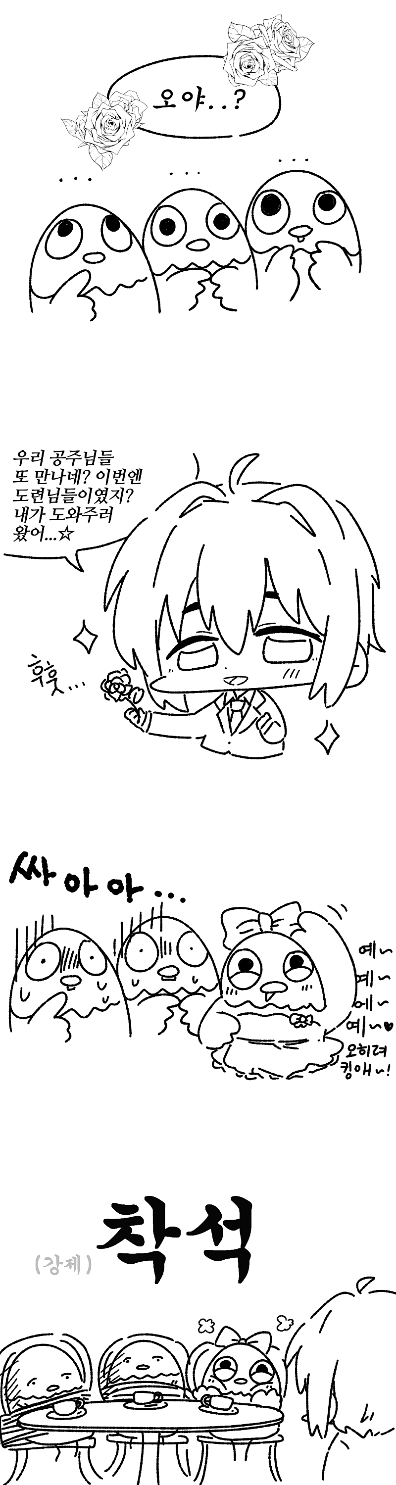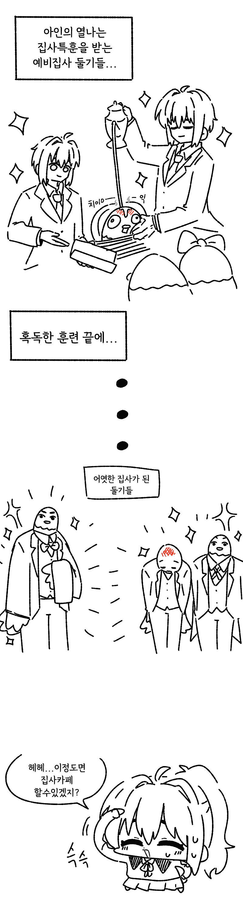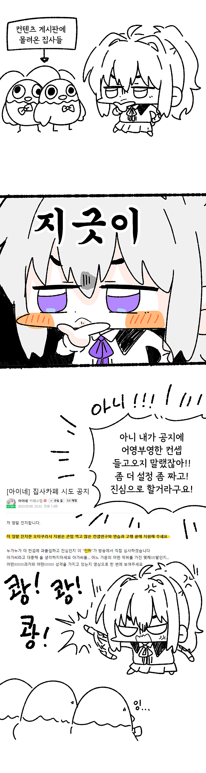 아이네(?)가 둘기들 집사교육시키는 만화