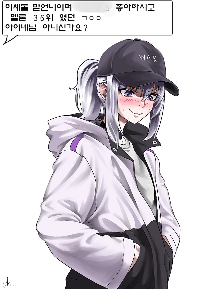 현실에서 모르는 사람이나 팬이 말을 걸때 부끄러워 하는 모습을 상상해서 그린 그림