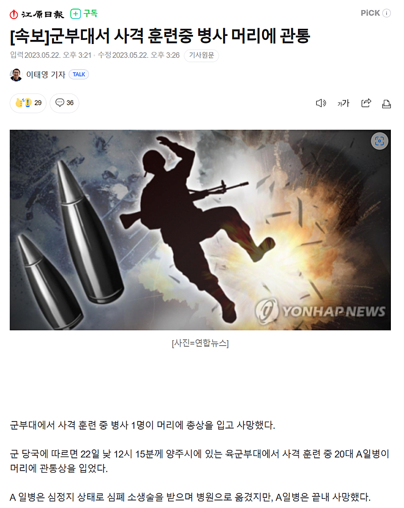 형 군사훈련중 총알 머리관통해서 사망소식..봤어..?...