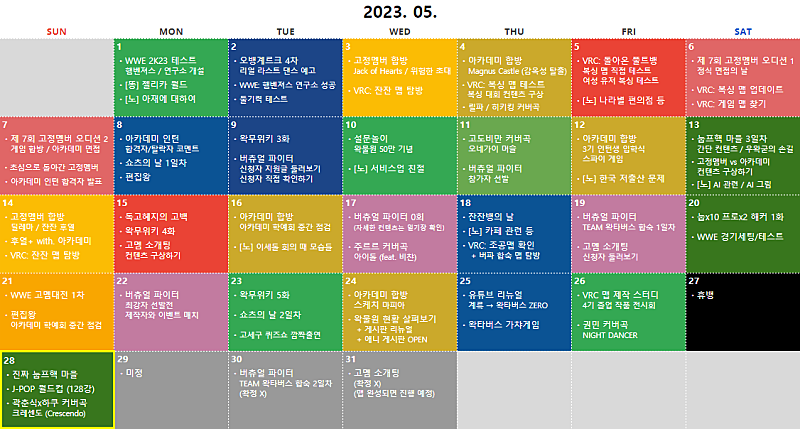 2023년 05월 ① 고멤의 집 ② OGQ 고멤티콘 4 + 등급티콘 ③ 이세계아이돌 합방: 아르마3 (안할 거 같음)