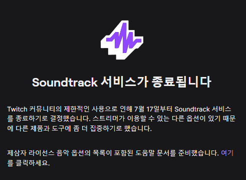 형 트위치 사운드트랙 종료한대...
