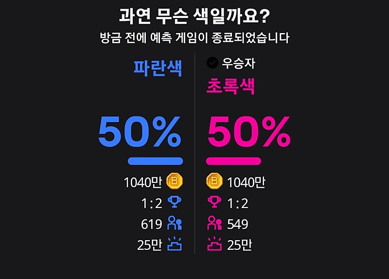 ㄴ3900) 💙:자 결과를~ 공개하도록 하겠습니다 릴파가 오늘 맛있게 먹을 포카칩의 컬러는 바로~!! 두구두구두구두구두구두구두구 초록색!!!