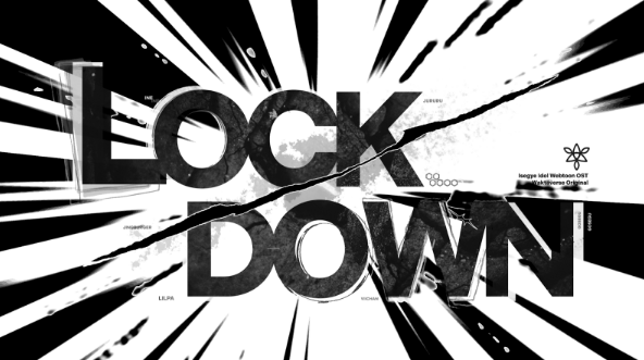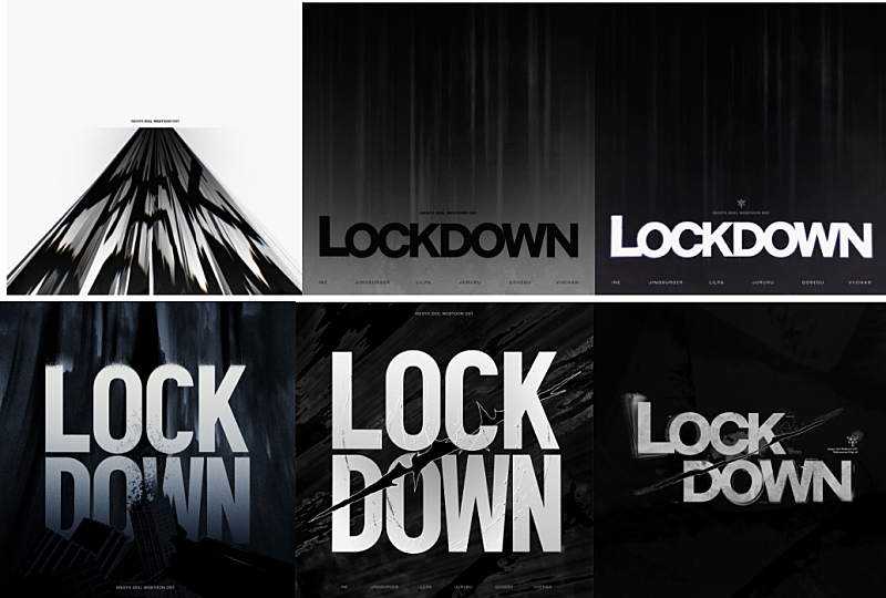 LOCKDOWN 글씨에 사용된 텍스처는 마법소녀 복장 이세돌 분들의 러프 스케치를 겹쳐놓은것을 사용했습니다
