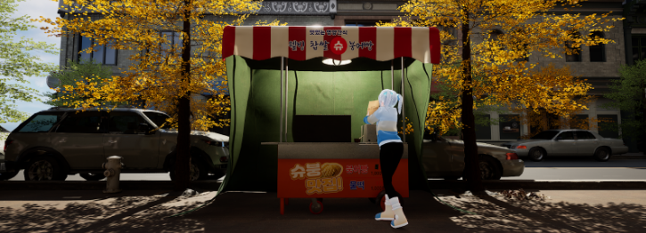 씬 배치 등을 진행 하였고 서브로는 소품 및 악세사리 모델링, 텍스쳐링, 간판 텍스처 디자인, 조그마한 촬영,