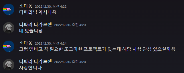 때는 올해 초 드림어게인을 끝내고 공허함을 느끼고 있을 무렵 갓갓갓님께 메세지가 하나 왔습니다.