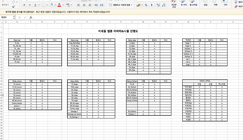 이번곡은 시뮬파일이 67개나 돼서 헷갈릴 것 같아 시트로 정리해서 작업했습니다.