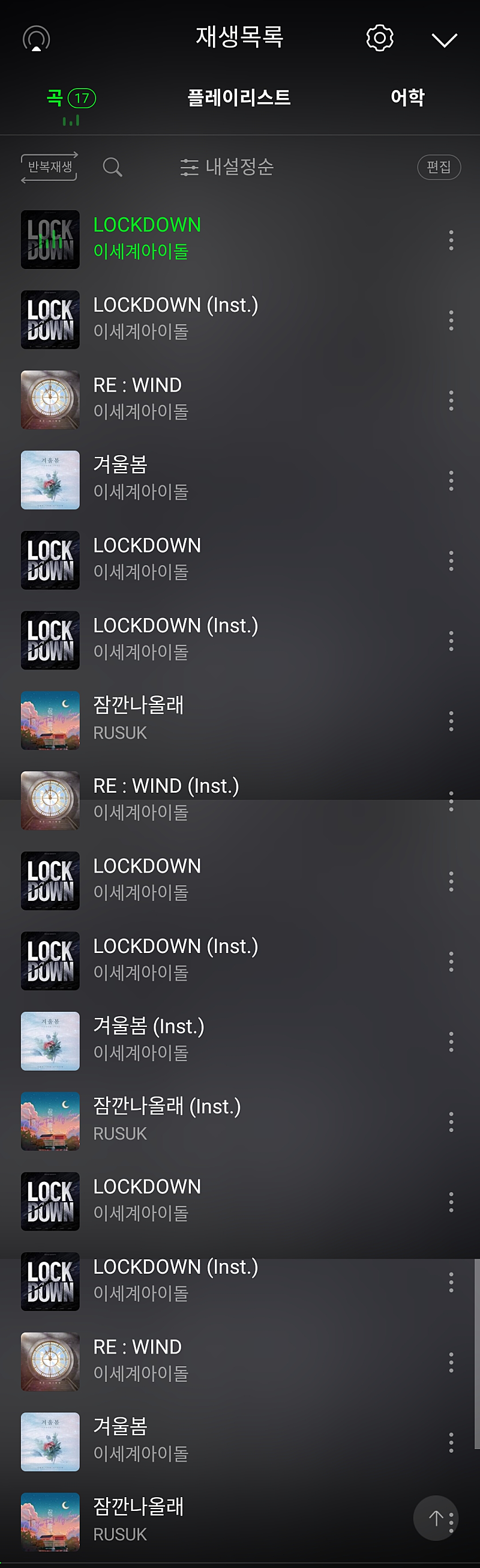 중복재생으로 들어가면 되려 차트에 집계되지 않습니다