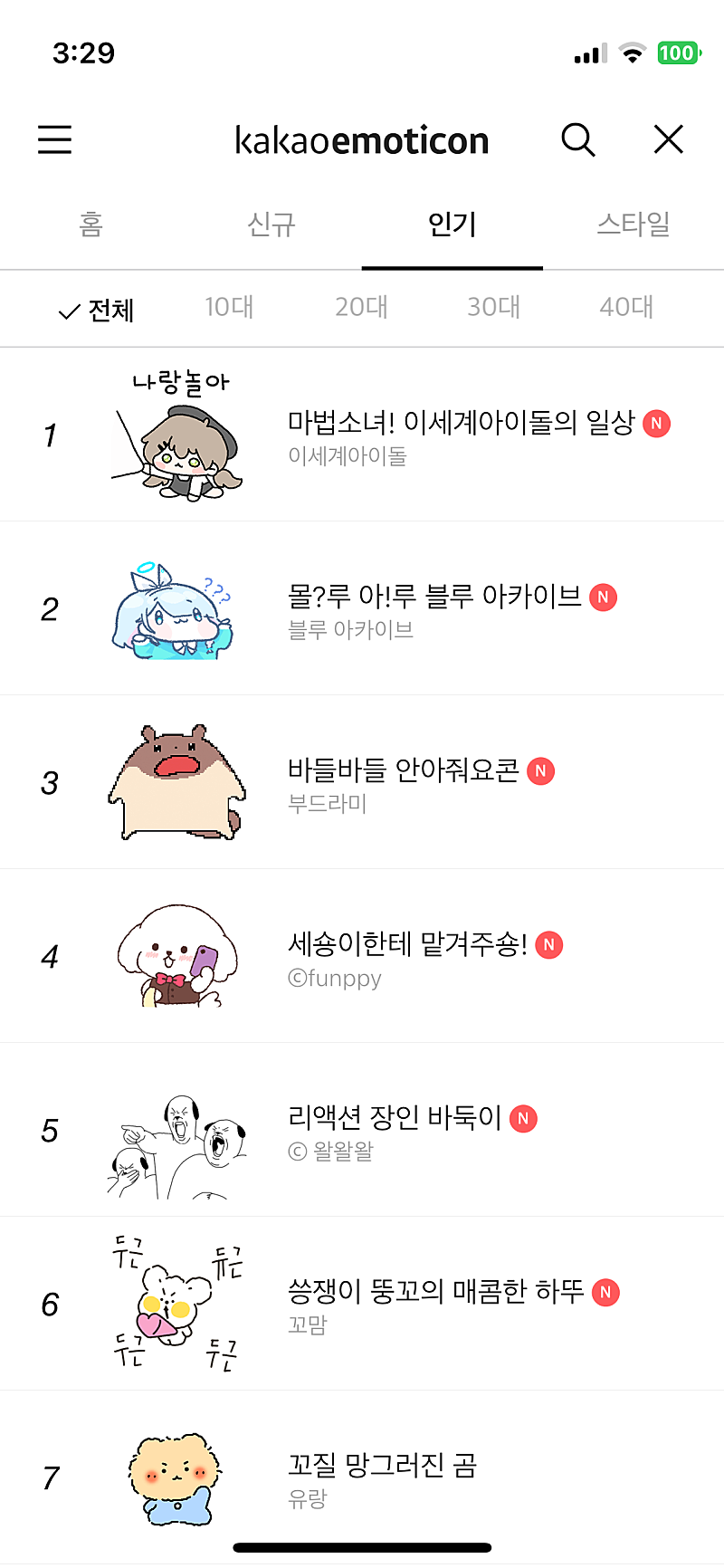 지금보니까 전연령 1위네요ㄷㄷ
