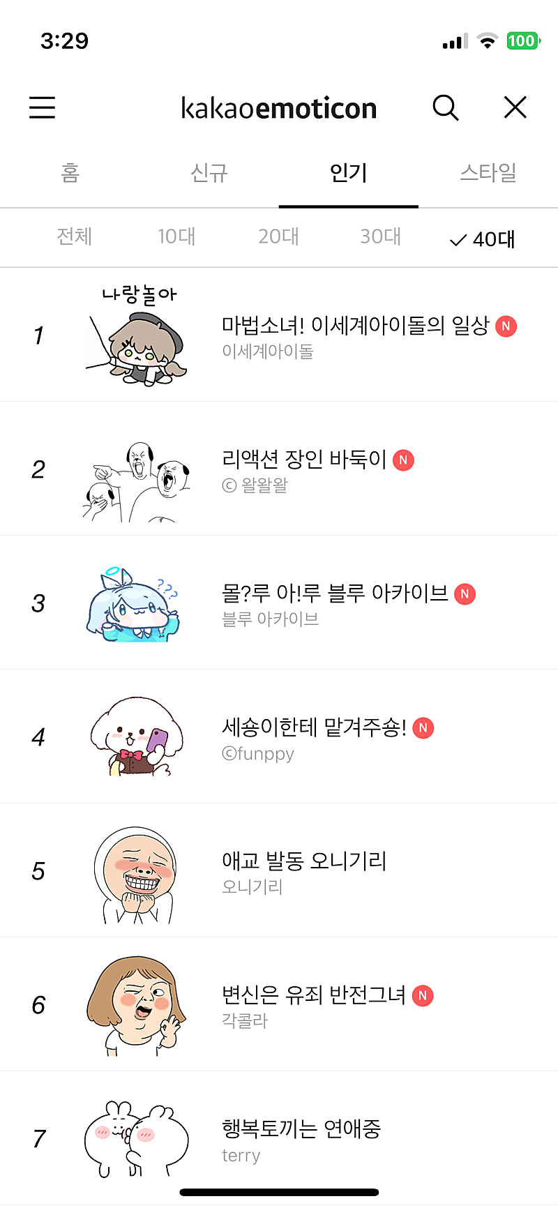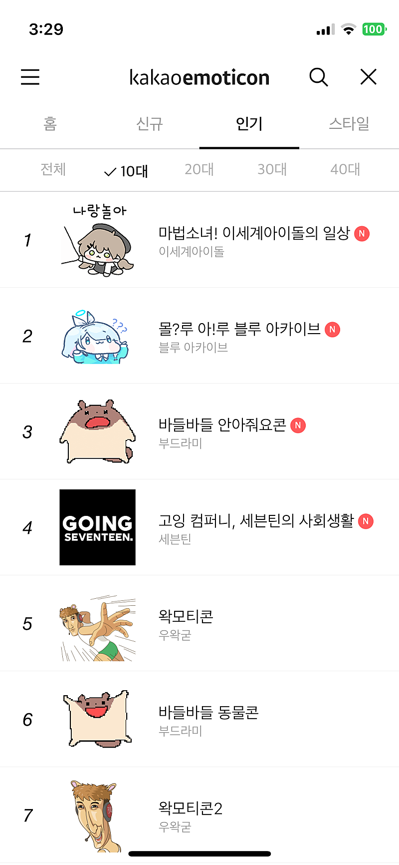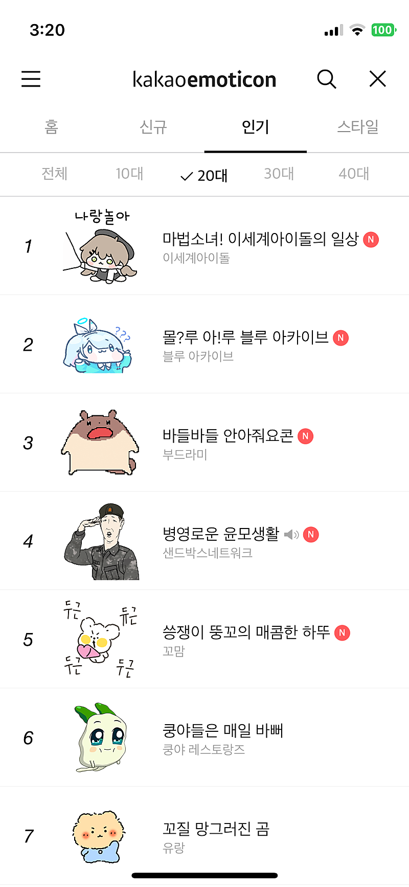 형 이세계 아이돌 이모티콘 1위 했어