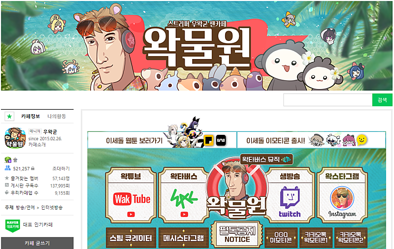 아 어쩐지 이세돌 팬카페인줄 알고 왔는데 우왁굳이랑 고멤이랑 이것저것 많아서 혼란스럽다는 유입분들 많던데
