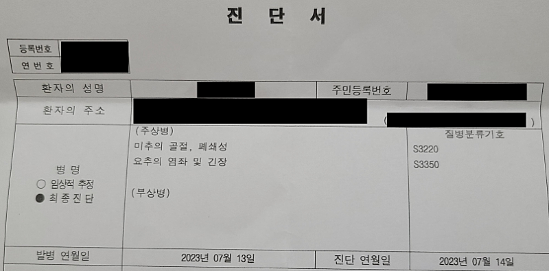 극심한 통증.. 가만히 있어도 비명지르는 허리랑 엉..