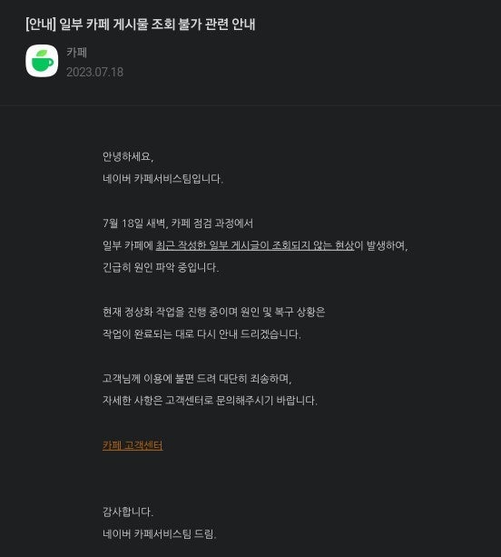 형 네이버 카페도 이유를 모른대