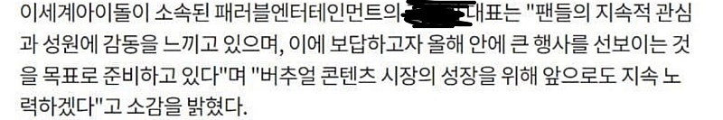그리고 왁엔터 대표 우왁굳의 인터뷰 내용중