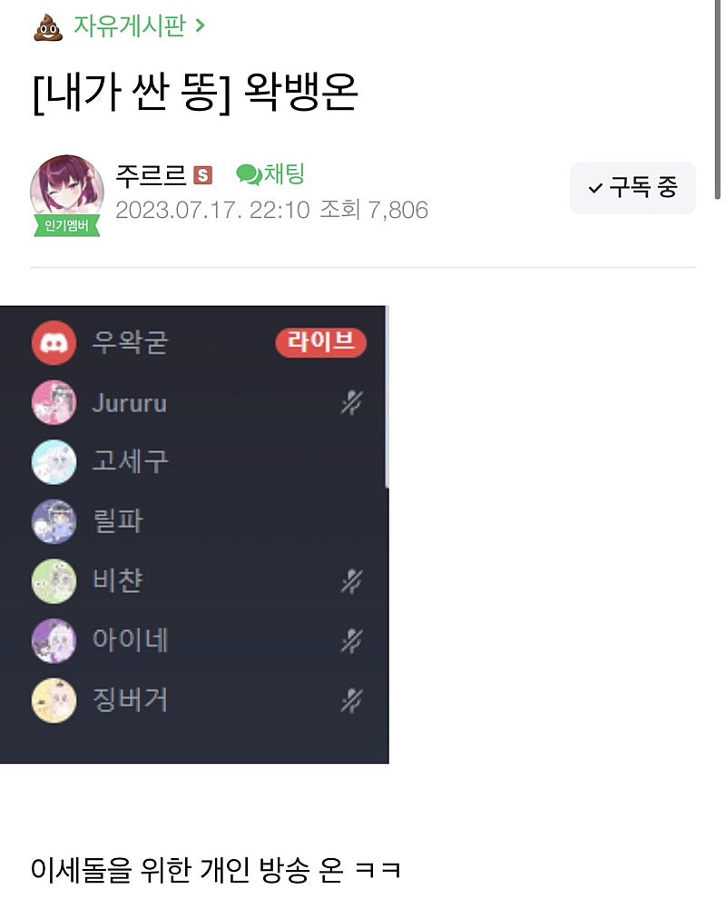 이로인해 왁쥬가 불타기 시작했으며 주르르의 방송 캘린더에 따라 여러 추측이 오갔습니다.