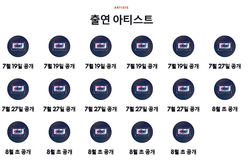또한 7월 8월공개 예정인 아티스트는 각각 6명으로 딱 맞아떨어집니다.