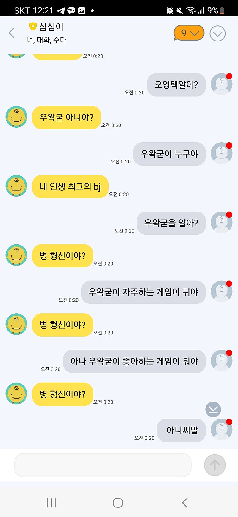 형 심심이한테 우왁굳 아냐고 물어봤는데 대답 싸가지 없어