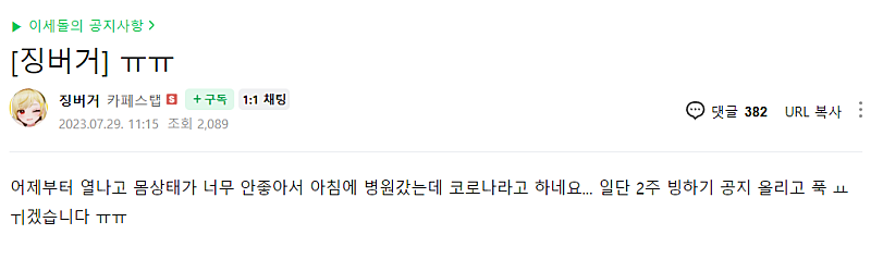 형 말대로 코로나 걸리신 버거님 보셨어?