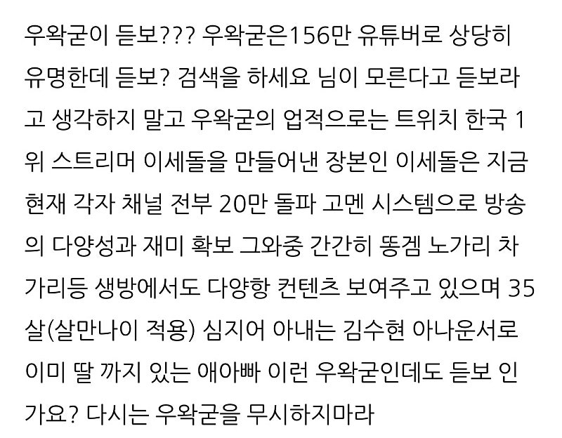 우왁굳 듣보 아닌가요?라는 지식인 봤어?