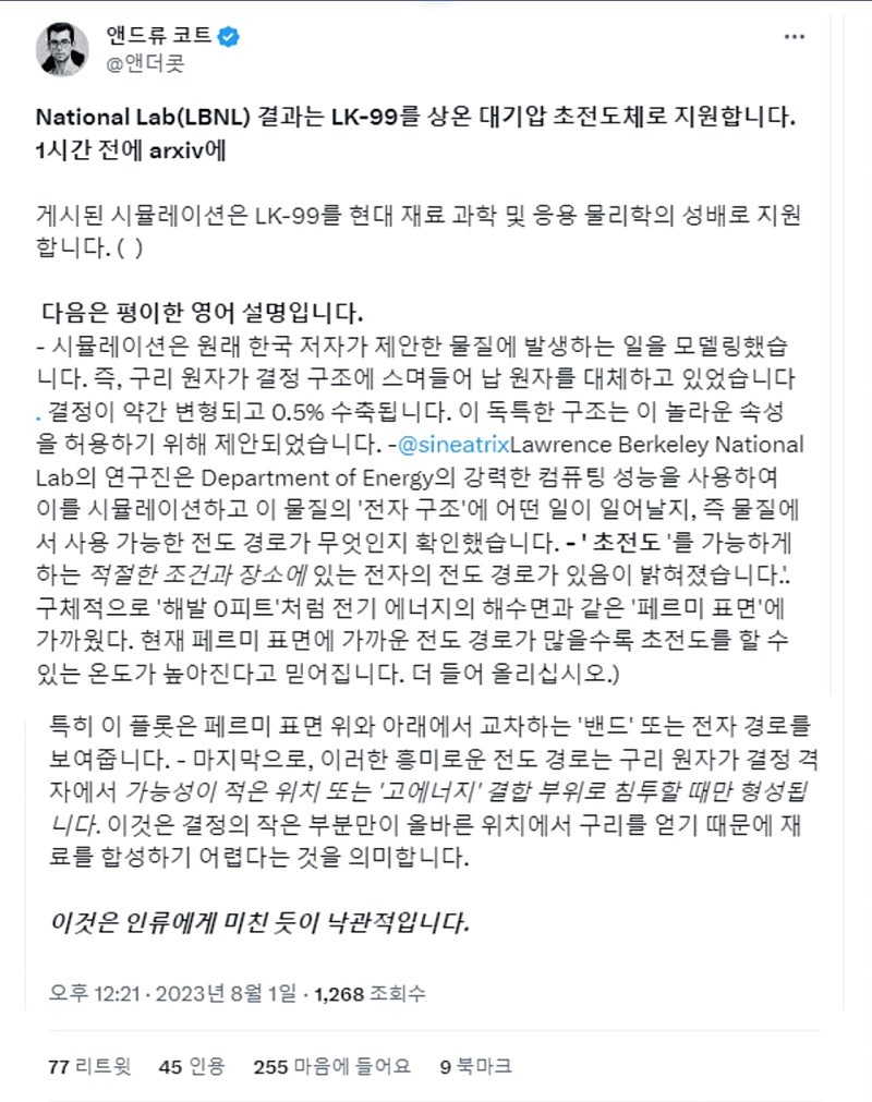 형 우리나라에서 논문낸 상온초전도체 LK99 이론 외국에서 거의 입증된거 봤어?