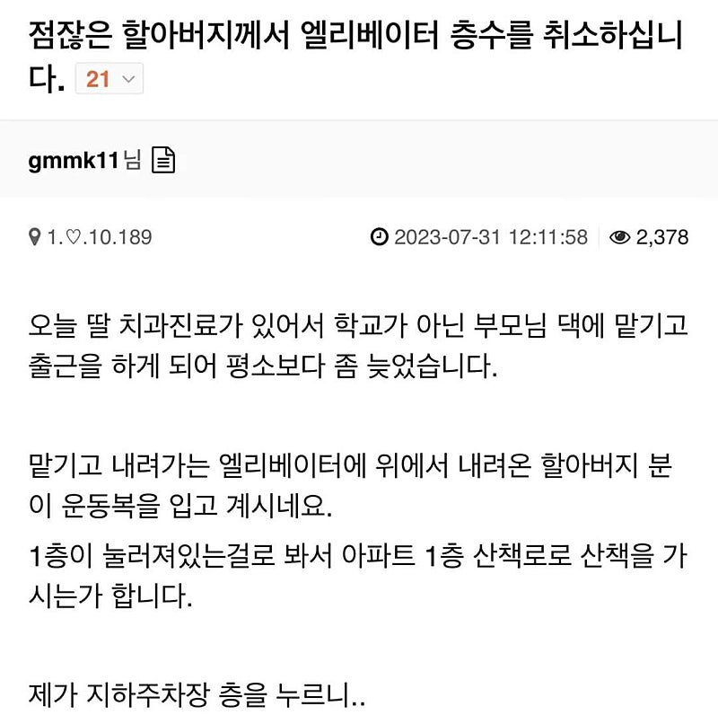 엘리베이터를 취소하신 할아버지