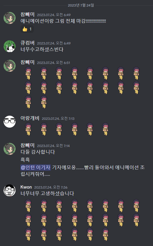 (그리고 팀장님이 애니메이션 질감이 되게 독특하다고 좋아하셨습니다.