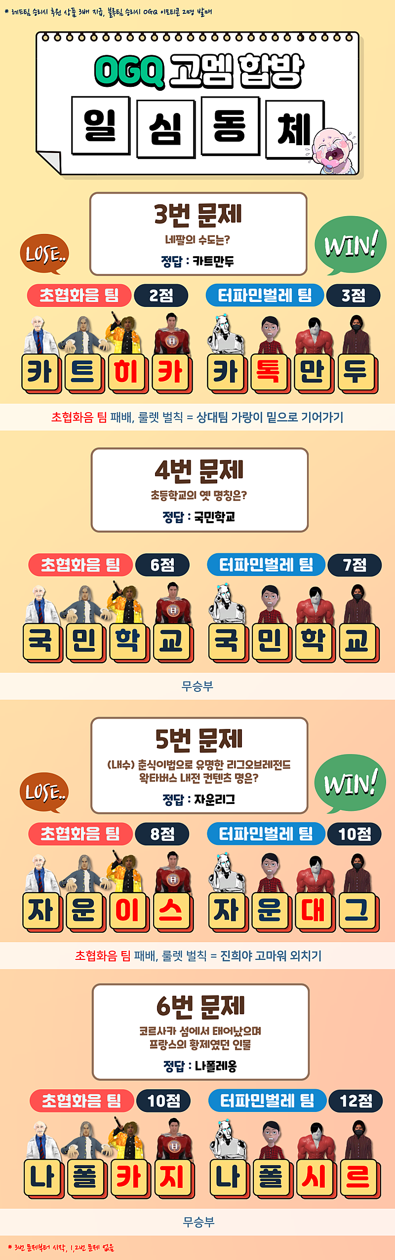 고정 멤버 OGQ 일심동체 합방 모든 문제와 정답, 고멤 정답 정리