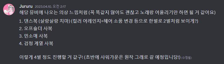 주르르님께 커버곡 의상 디자인이 필요하단 연락을 받았고..