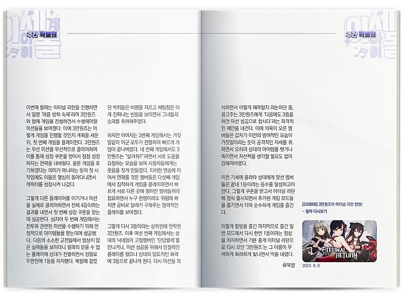 주왁8월 둘째주(주간왁물원 1주년!,닌닌인터뷰)