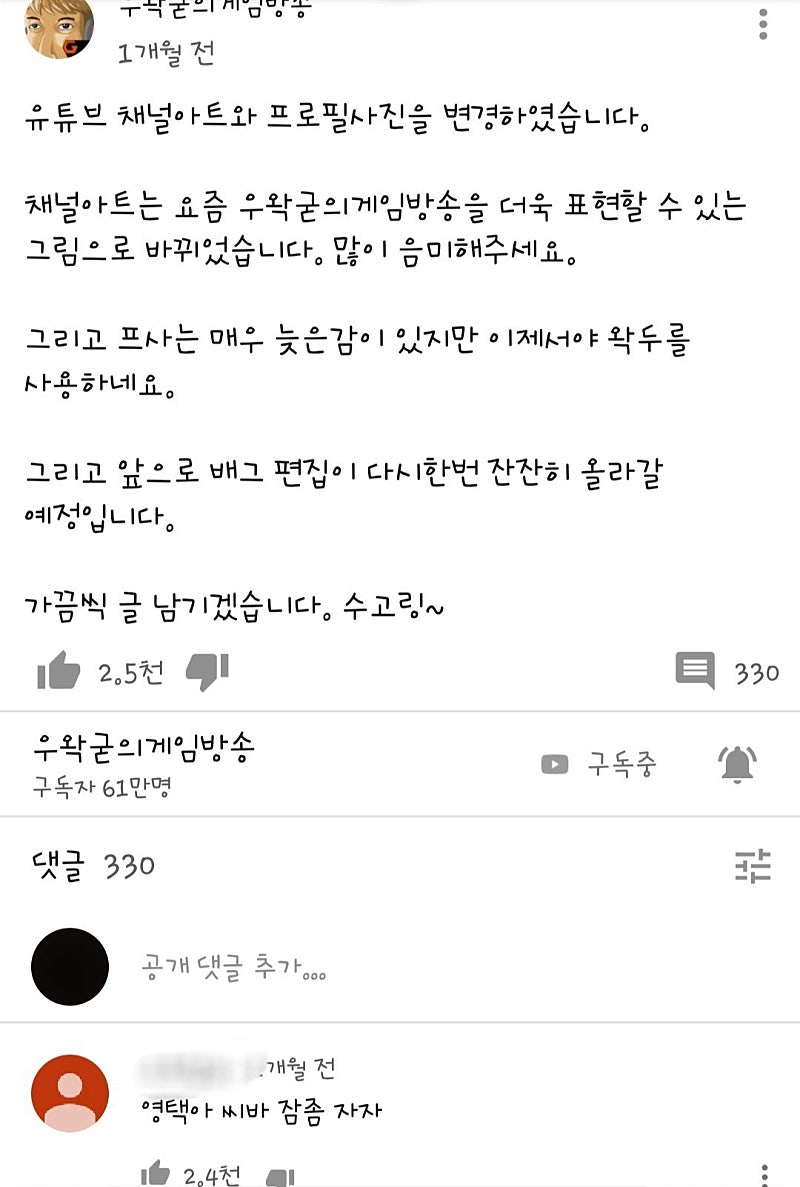 저때 맨날 방종하고 엄청 늦은 새벽이 영상 업로드를 많이해서 잠 안자냐고 그랬는데 요즘은 뱅송에서 업로드하는걸로 바뀌었어요