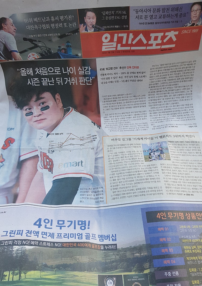 형 오늘 일간스포츠 1면 봤어?