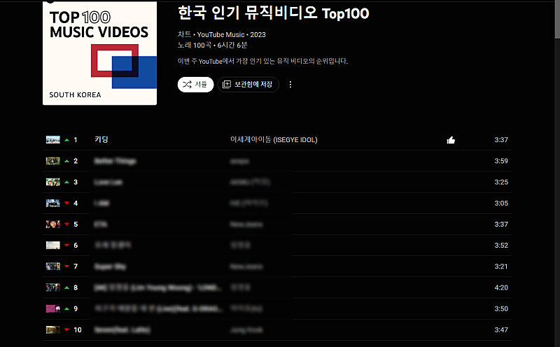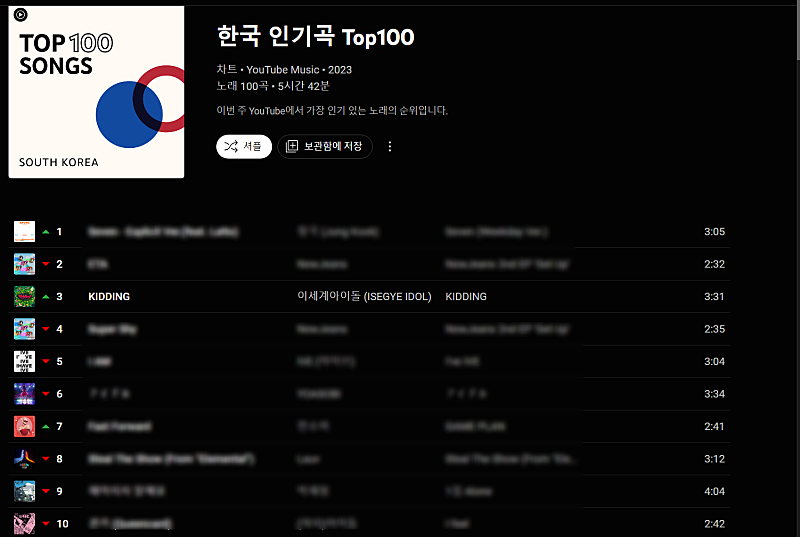 KIDDING 유튜브 뮤직 한국 TOP100 챠트 3위!!!
