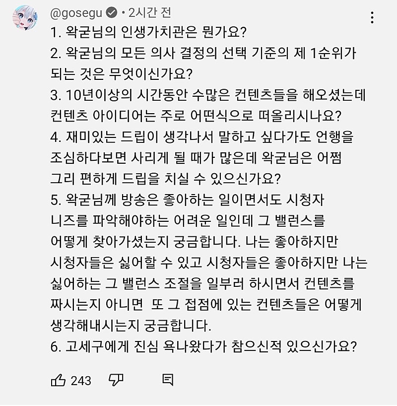 형 세구님이 Q&A 남긴거 봤어?