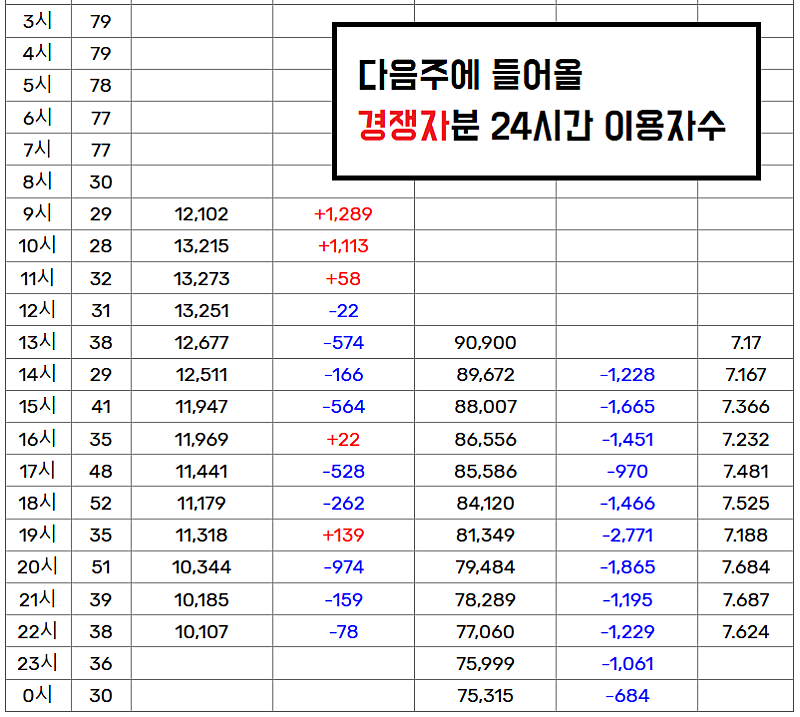 이게 다음주에 들어올 경쟁자분 이용자수인데, 지금 우리랑 비슷해