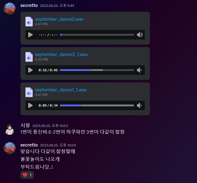 그리고 믹싱 마스터링에서 여자파트 부분 많이 신경썼는데