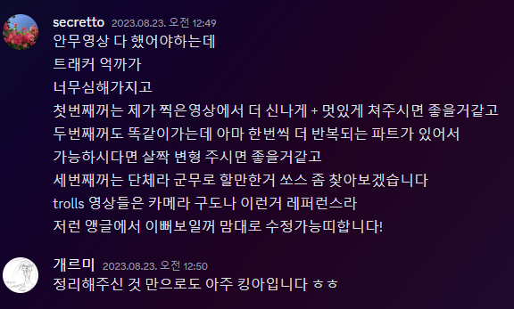 고멤들 보컬 멋있게 만들어주신 모플리님 카나님