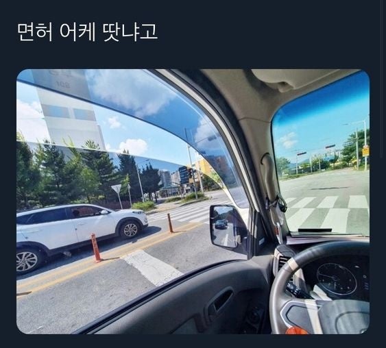 사이드미러에 보이는건 1차선에 있는 차 아닌가요...?