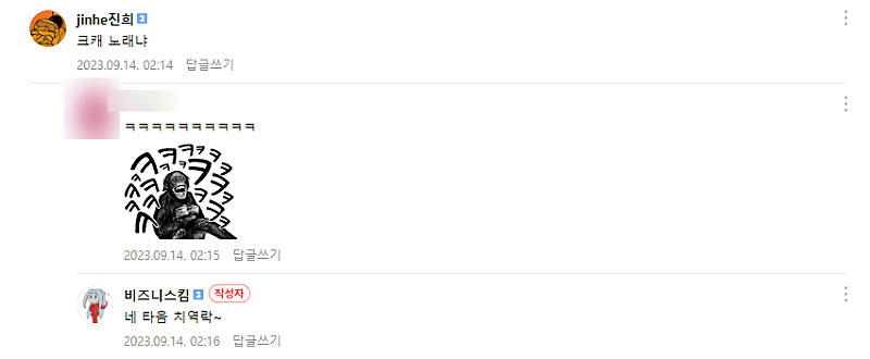 형 비킴님 글에 댓글 단 진희 봤어? (보심)