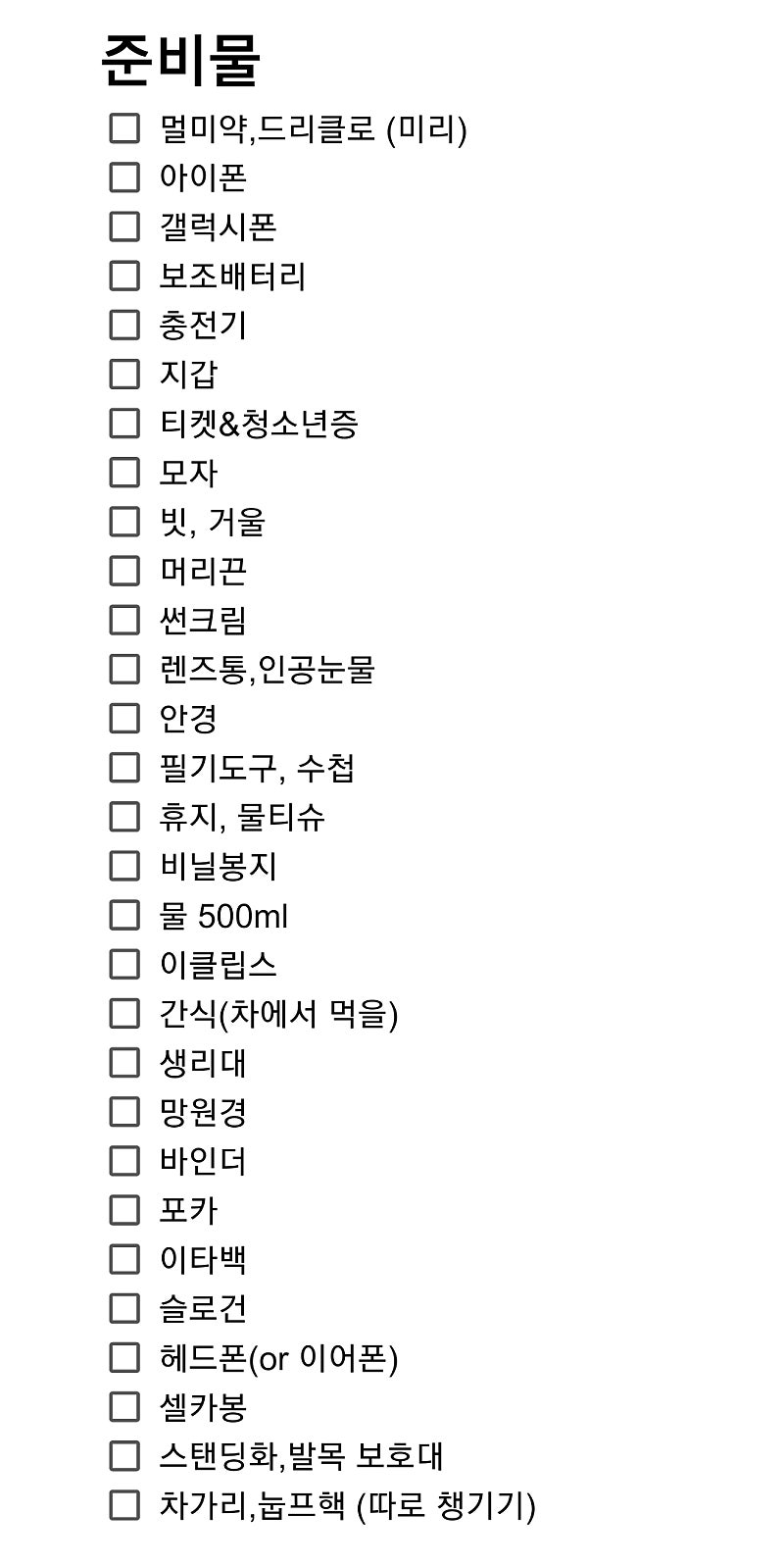 짐 준비 중인데 분야별로 소분해서