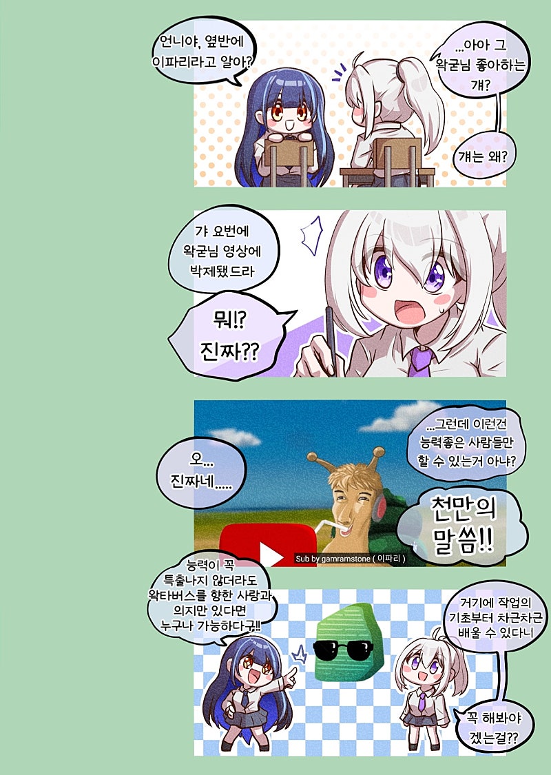 이번 주간왁물원 9월 둘째주 발행본에 감람스톤 홍보차 연재된 (일단은)세돌유치원 특별편입니다