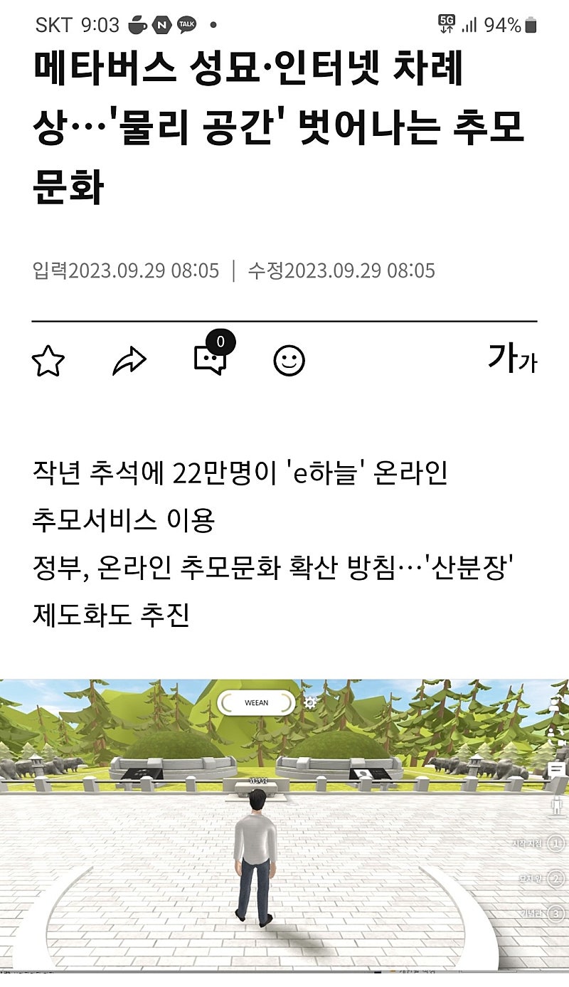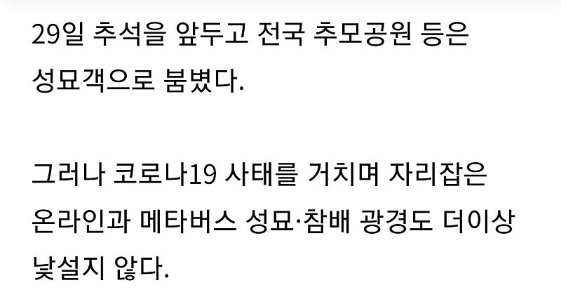 아침에 뉴스 하단에 성묘도 비대면 메타버스라는 문구가 지나가길래 검색해봤더니 진짜 있나봐