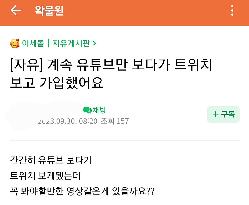 형 따끈따끈한 유입한테 바로 왁타 먹이는 팬치 봤어?? ㅋㅋㅋㅋ