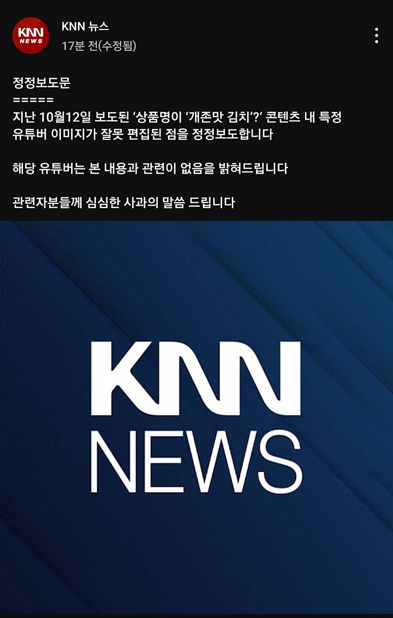 형 개존맛 김치뉴스 정정보도문 올라왔어