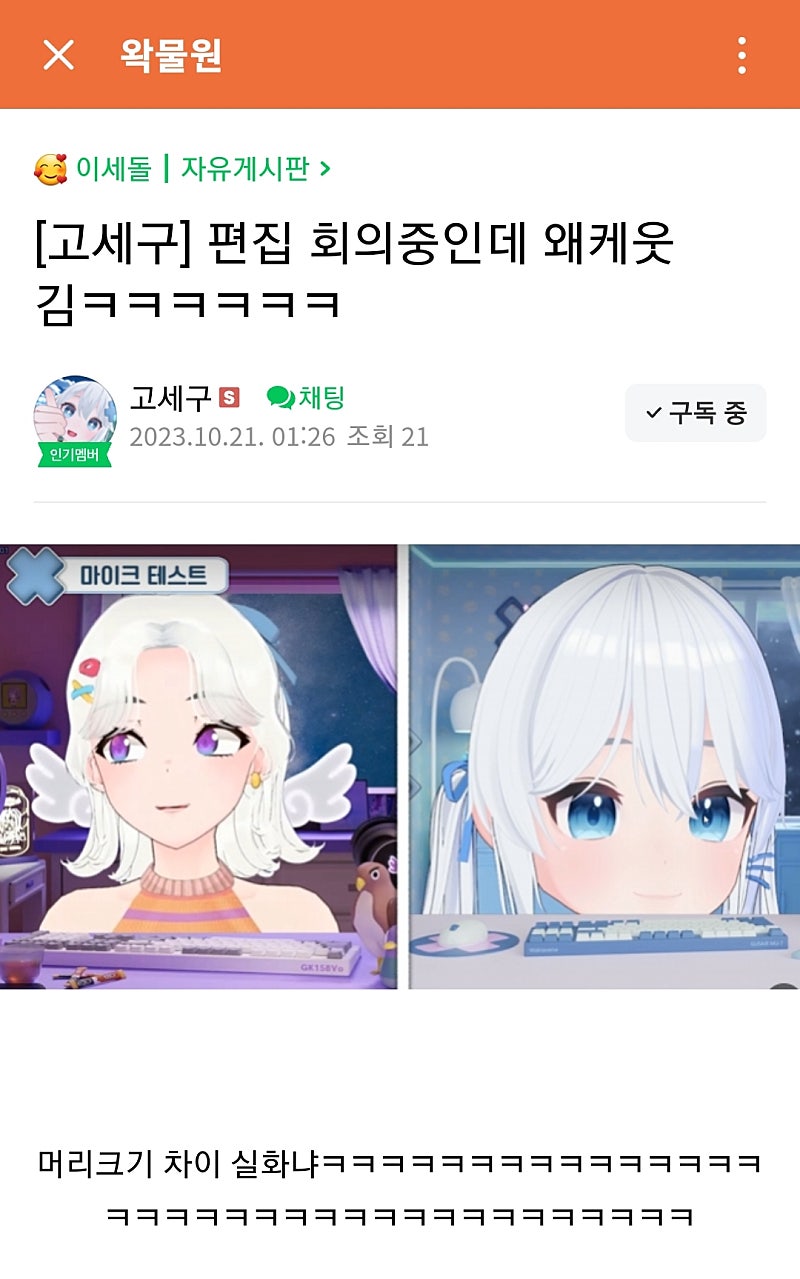 아바타 확대 차이 때문이긴 한데 본인이 이렇게 말하시는게 웃김 ㅋㅋㅋㅋㅋㅋㅋ