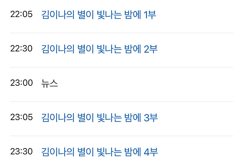 방송 시간 : 오후 10시 5분 ~ 자정