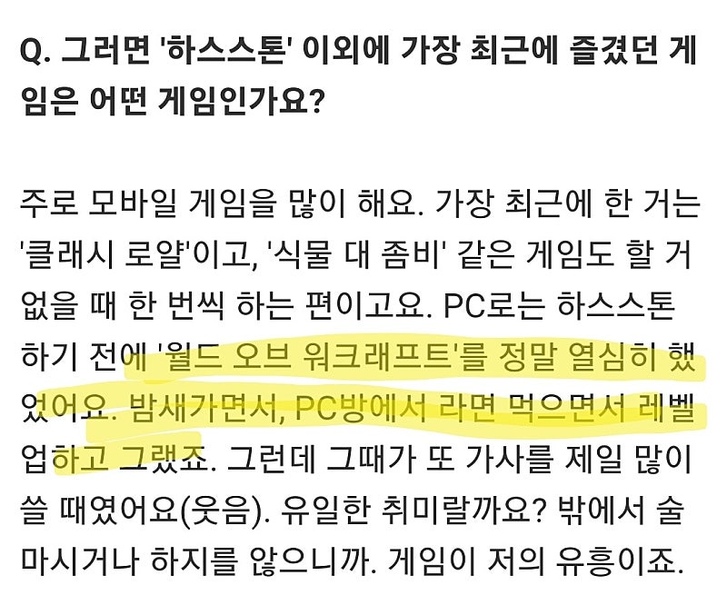 그리고 하스스톤 하기전에는 와우를 열심히 하셨다고 합니다